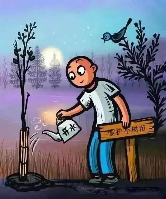 网上有一个例子,一张图片中一株草长在沥青地里面,破土而出,明面意思是这株草生命力很顽强,具有向上的精神。但实际上,这是讽刺沥青路面的偷工减料,导致质量不过关。再如,网上有图片表示,用开水浇小树苗,名义上是浇水,实质上是在伤害小树。