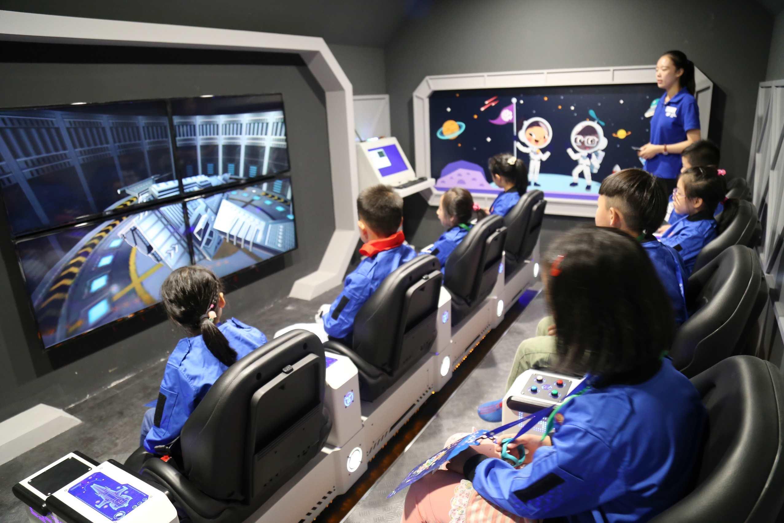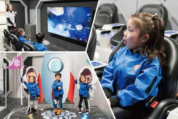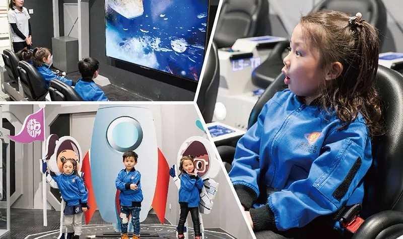 推荐的逼真体验! “宇宙飞行”是一个4d的模拟驾驶,小朋友们可以扮演“宇宙飞船船长”,体验太空穿梭的感觉。“宇宙行走”是模拟失重空间的,可以安全地体验到太空失重的感觉。