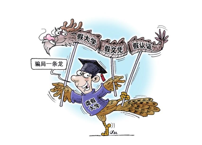 虚假大学是指不具招生资格、没有办学资质、涉嫌非法招生和网络诈骗的虚假大学。这类大学都建有空壳网站,无实体校址,打着大学的幌子,从事着伪造学历文凭证书之类的招生诈骗。社会危害性极大!