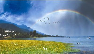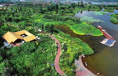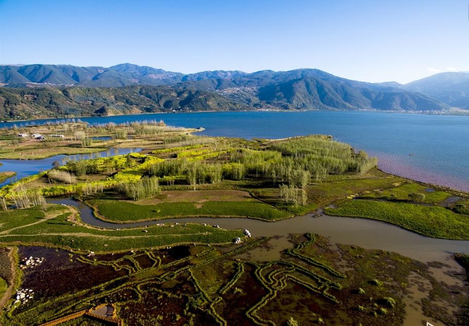 邛海的美,美在拥有全国最大的城市湿地。从2009年开始,西昌启动邛海生态保护与湿地恢复工程建设,工程共分六期,一期“观鸟岛”,二期“梦里水乡”,三期“烟雨鹭洲”,四期“西波鹤影”,五期“梦寻花海”和六期“梦回田园”。总面积达到2万亩,围绕邛海画上一个圈,像是给邛海戴上了一圈美丽的花环,成为全国最大的城市湿地。