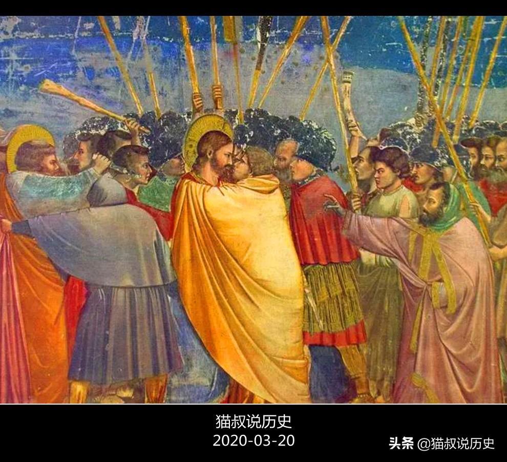 1.《犹大之吻》的尴尬。第二十集,张小敬和檀棋共同造访了景教寺,伊斯前来迎接,细心的朋友可能注意到了,他们背后有一副巨大的画作——《犹大之吻》,此画非常华丽,还镶嵌着金边。可是,此画虽然气势逼人,却不是来源于波斯,当然也不会出现在景教寺里。此画来源于意大利威尼斯的圣马可大教堂,不仅建筑为拜占庭风格,绘画也是典型的拜占庭风格。硬伤在于,此画完成于12世纪至13世纪,比唐朝晚了好几百年。