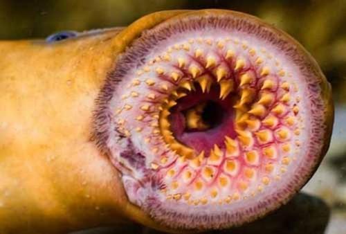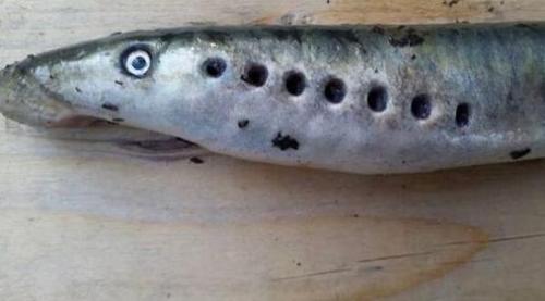 原来,这是在英国绝迹200年之久的七鳃鳗!又被称之为“僵尸鱼”。它通常用吸盘状的口吸附在鱼身上,再用牙齿锉破鱼体,吸食其血和肉,被吸食的鱼最后只剩下一副骨架。值得一提的是,七鳃鳗在地球上已经存在了3.6亿年,出现在恐龙之前,是地球上最古老的生物之一。