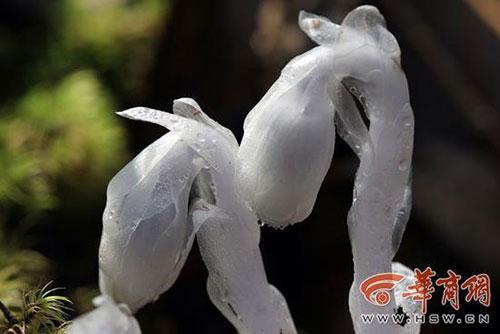 最近,周至殿镇田峪景区发现了一种独特的植物,株高十多厘米,一簇一簇地生长,浑身晶莹剔透,非常罕见!它就是水晶兰,也有着“幽灵草”“梦兰花”等名。在武侠小说里,它常常被神化成具有起死回生功效的仙草,或被视为具有灵异力量可杀人于无形的邪恶化身,甚至于它的幽香也能让人闻之色变。在传说中它也是冥界的花,是邪恶和神秘的象征,因此也得名“死亡之花”。
