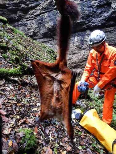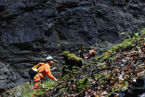 10月1日至7日,由广西、湖南、陕西等地洞穴探险精英组成的一支探险队,在进入一个险峻的天坑时,意外发现了一只被困的珍稀动物飞猫,并对它进行了救助。