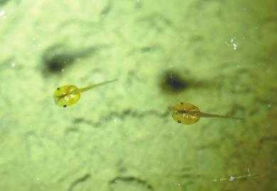 7月12日,暴雨过后暑热退去,成都望江公园附近一个老旧小区,大雨在泥地里留下几摊积水。密林里蚊虫猖獗,几束手电筒光打破了院落的平静,来自玉林小学的学生和著名环保人士沈尤一起,正躬身寻找。“快看这几只蝌蚪。”打着强光手电的沈尤在一块2平方米左右的积水前缓缓蹲下。他所说的蝌蚪正是四川狭口蛙的幼体,整体呈纺锤形,头部两边有外腮,两只大眼睛十分明显。除了灰色的皮肤,它看起来和普通蝌蚪无异。