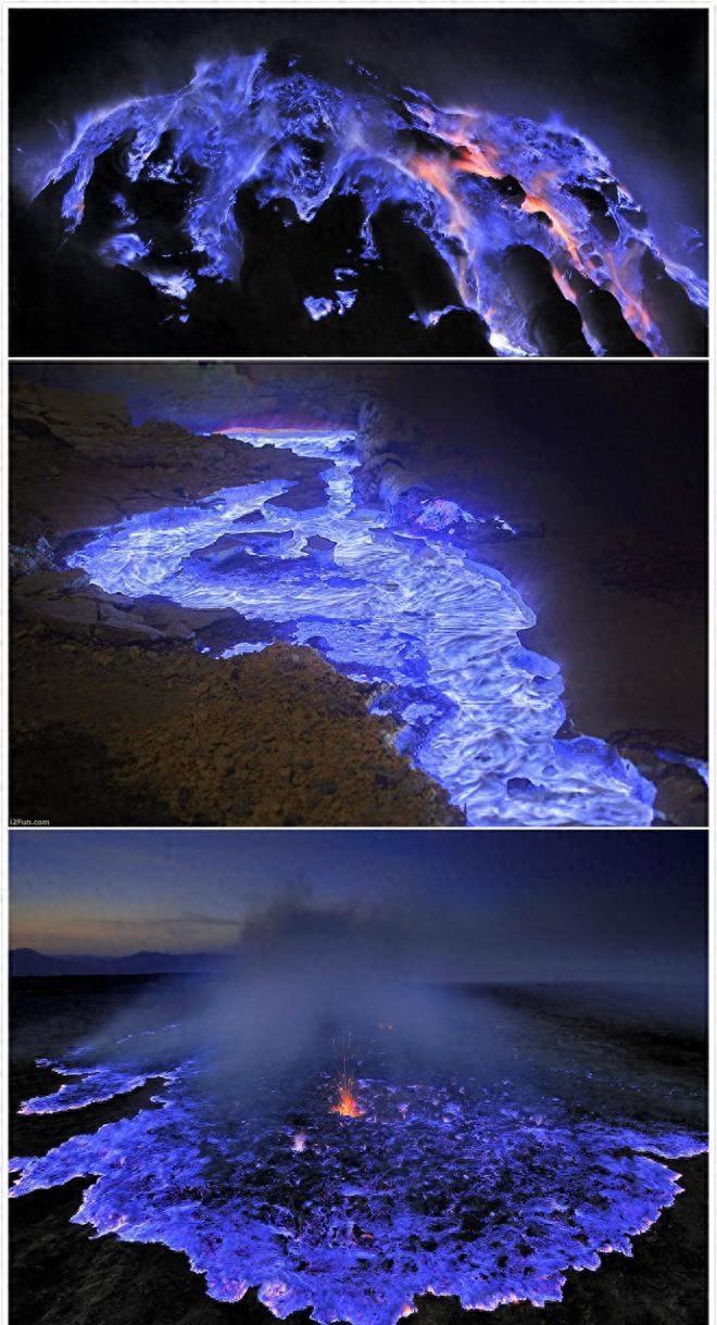27. 印度尼西亚爪哇岛的伊真火山。因为它富含硫磺,当它接触到熔岩时,就拥有了如此美丽的外观。