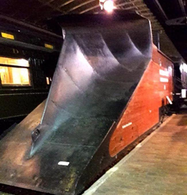 34、铁路清雪列车专门用于处理铁路上的积雪。它前端有专门的清洁器,清雪效率非常高!