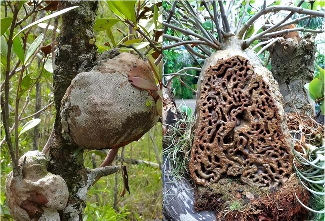 7. 这是几种与蚂蚁互相帮助的“蚂蚁植物”。蚂蚁粪便为它们提供生长的营养,而蚂蚁则为它们提供生存的保护。