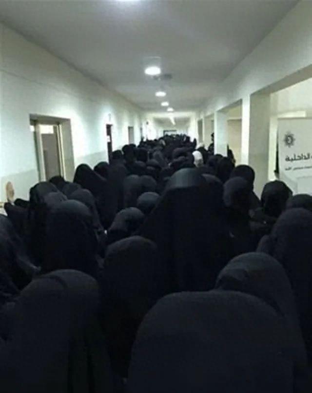 9. 在科威特,这些妇女排队投票;因为信仰伊斯兰教,所以每个女人都戴头巾。