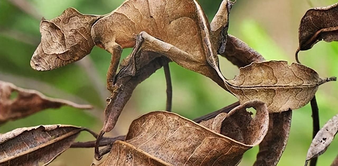 8.“死叶壁虎”看起来像一片枯叶。如果不仔细看,你还以为那只是一片卷起来的叶子。