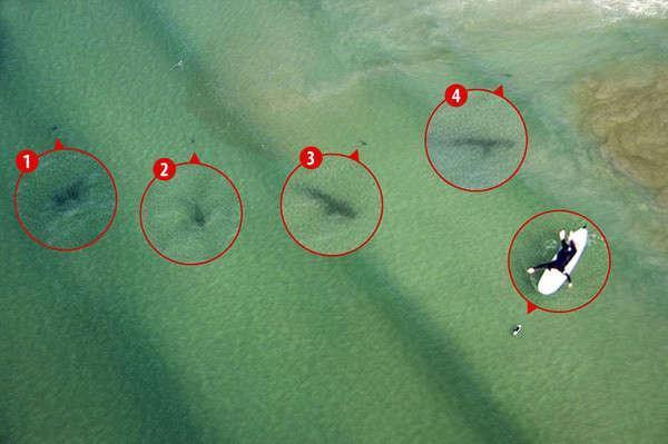 据英国《每日邮报》2月17日报道,日前,41岁的南非飞行员简 特勒斯芬(Jean Tresfon)开着旋翼机经过开普敦的一处名为Strandfontein Beach 的沙滩时,航拍到5条鲨鱼正游向一名冲浪女子的惊魂一幕。