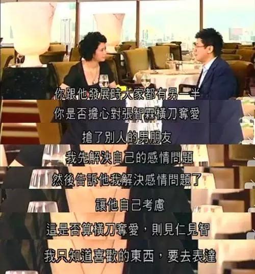 张智霖、许秋怡并没有公开承认过恋情,但那时人人都知道他们是一对。袁咏仪喜欢上张智霖后立马跟有妇之夫斩断情丝,张智霖用了几个月的时间处理了自己之前的感情纠葛。