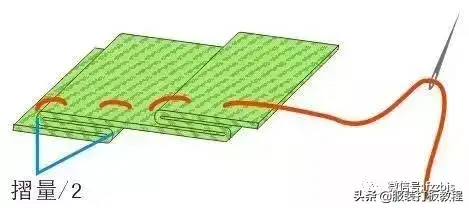 3、用针线将布边一边按摺量折好一边缝,待用。这里有几种摺形