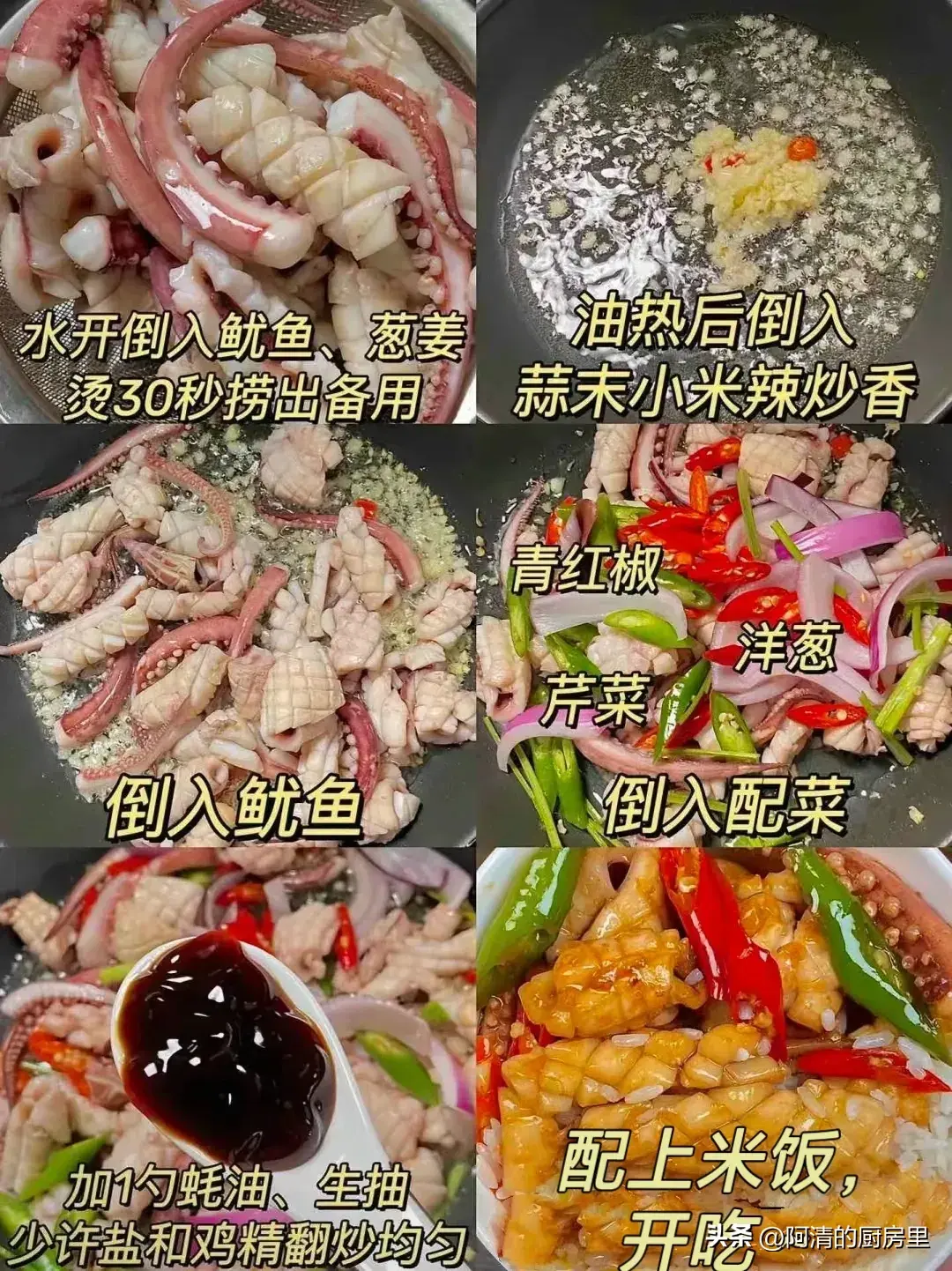 所需食材:鱿鱼、洋葱、青红椒、芹菜、蒜末、小米辣