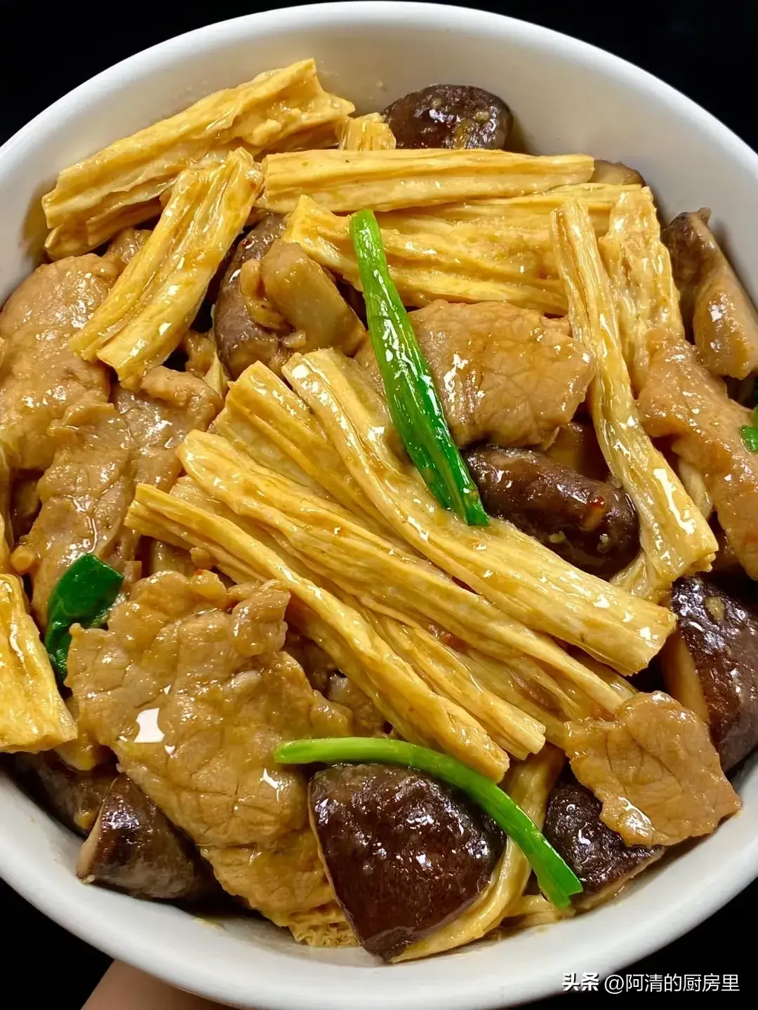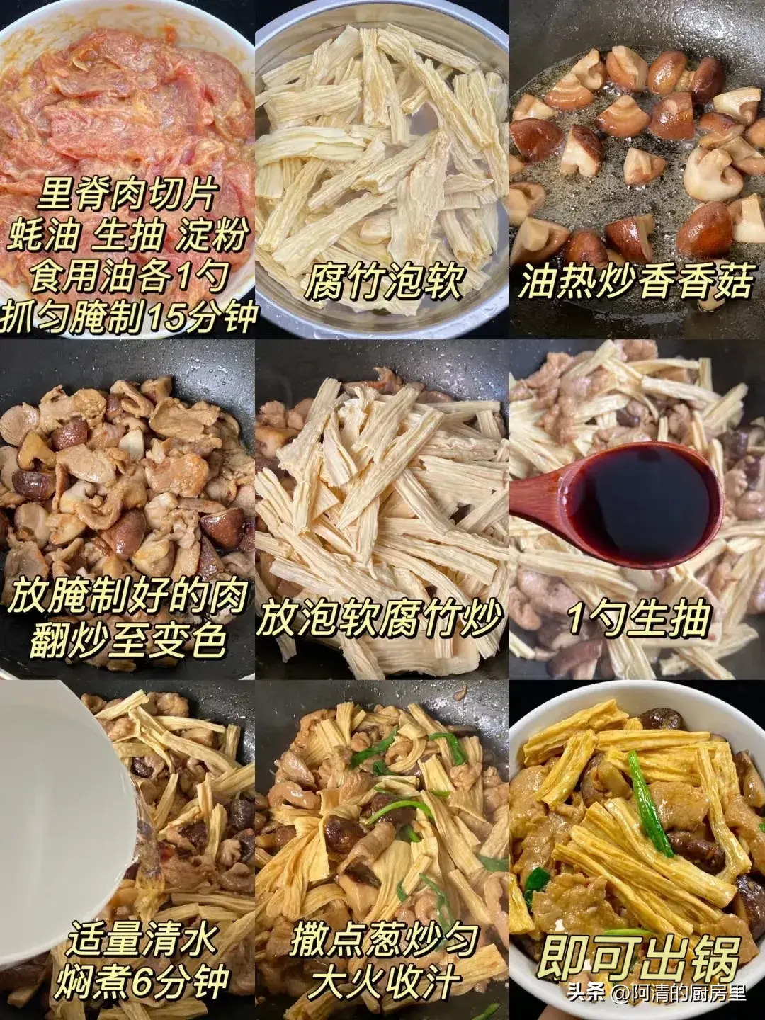 所需食材:里脊肉、腐竹、香菇、小香葱