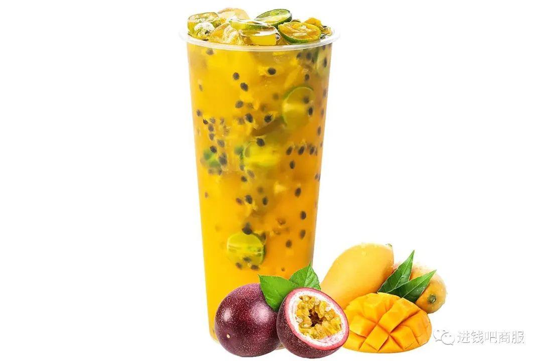 饱满的百香果肉,搭配柠檬茶!茶底醇厚的口感和果味清香一中和,鲜爽十足!