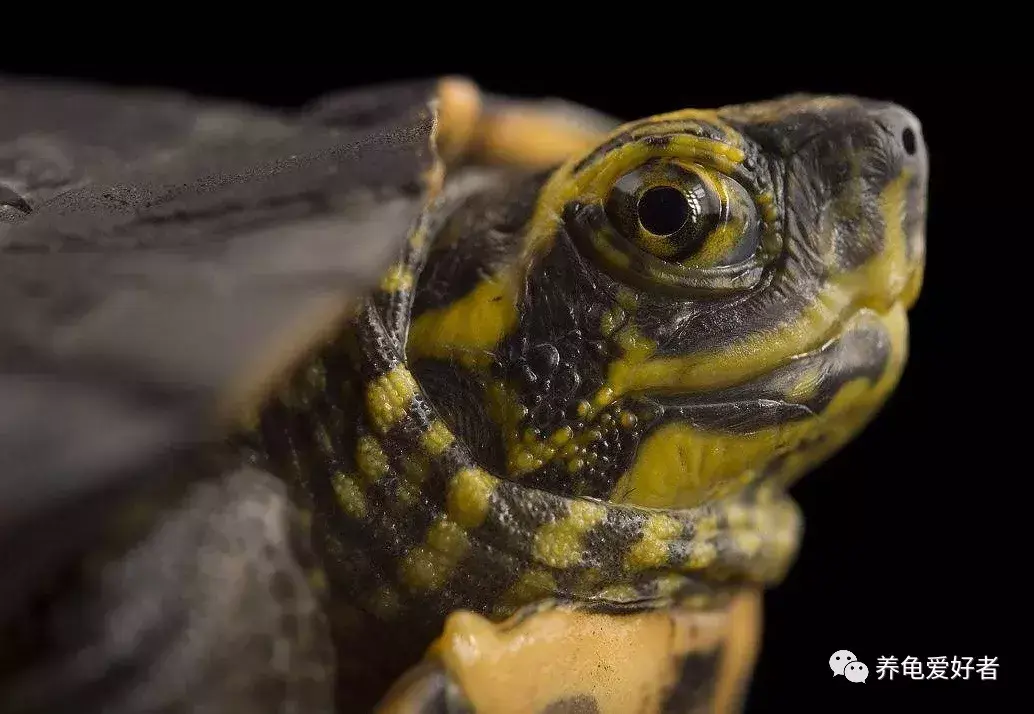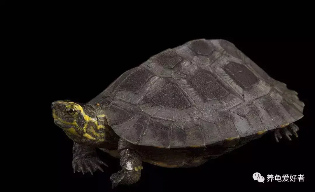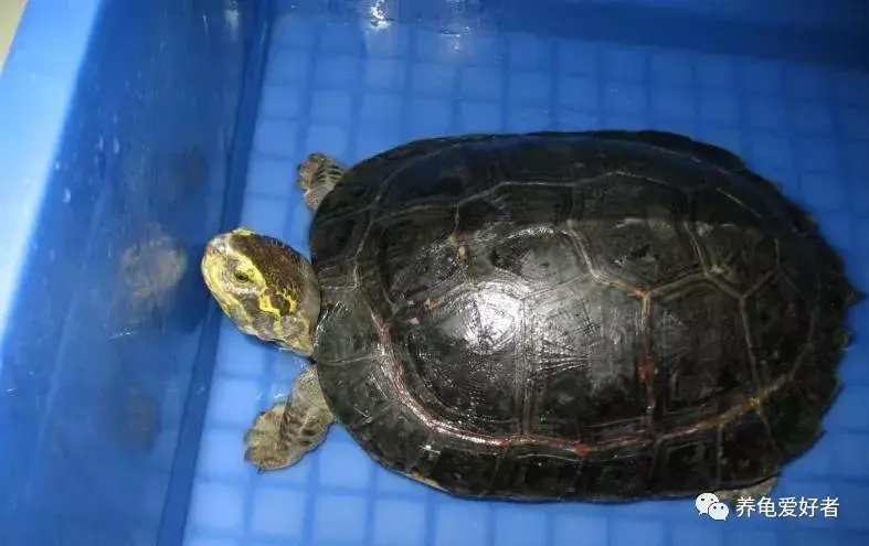 黄头庙龟是大体型的龟,稚龟与成龟的差别较大,稚龟的背甲尾端有锯齿形状的分布,成龟逐渐消失,黄头庙龟背甲黑色,头部散落着黄色的斑点,比较容易辨认。