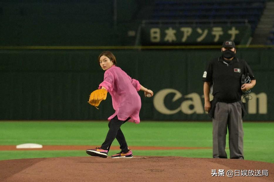 5月17日,日本人气女星石原里美作为开球嘉宾出席了《Suntory Dream Match 2021》的开球仪式。