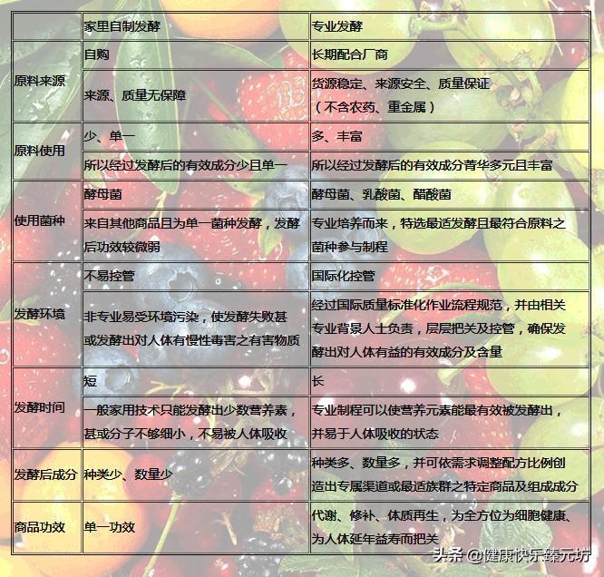 自酿发酵与专业发酵在用料成分、发酵时间、酵素产物和食品安全都有很大差距