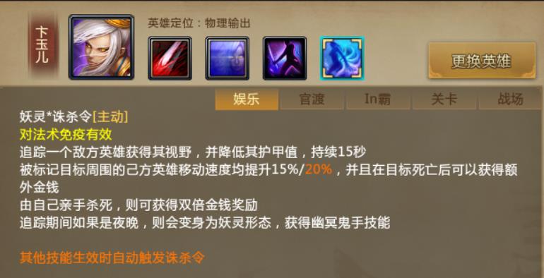 所有梦三国2的粉丝都知道,卞玉儿的英雄定位是在一个前期猥琐发育,中期后期输出爆炸的秒杀流刺客英雄。许多玩家都喜欢这个英雄的暴力秒人的快感,但是头疼的是前期对线太弱,如果一不小心,就会被敌方针对,那就会相当没有游戏体验了。那么我们应该如何玩这个英雄呢?