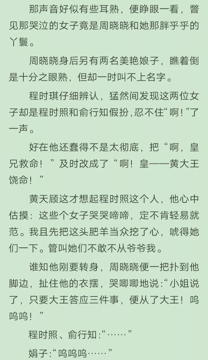 两人一路死里逃生,感情迅速升温,但俞行知乃国公之子,其母门第之见甚重,这段感情毫不意外的受到阻拦。但周晓晓与俞行知并未放弃彼此,最终两人得偿所愿喜结连理,周晓晓也凭其独特的个人魅力得到众人认可。