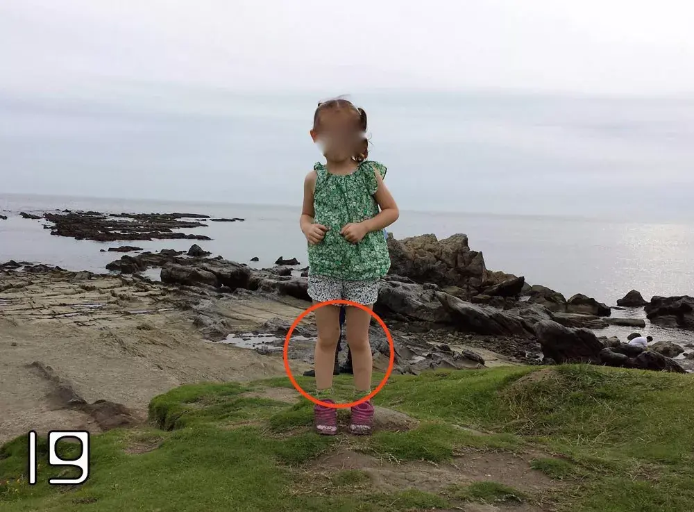 19.在神奈川拍摄的这张灵异照片爆红整个日本,图片当中一个小女孩正背对着大海拍照,背后却突然出现一双黑鞋,看起来就像是幽灵武士一样,相传在这个海岸旁边就是很多日本士兵的坟墓。