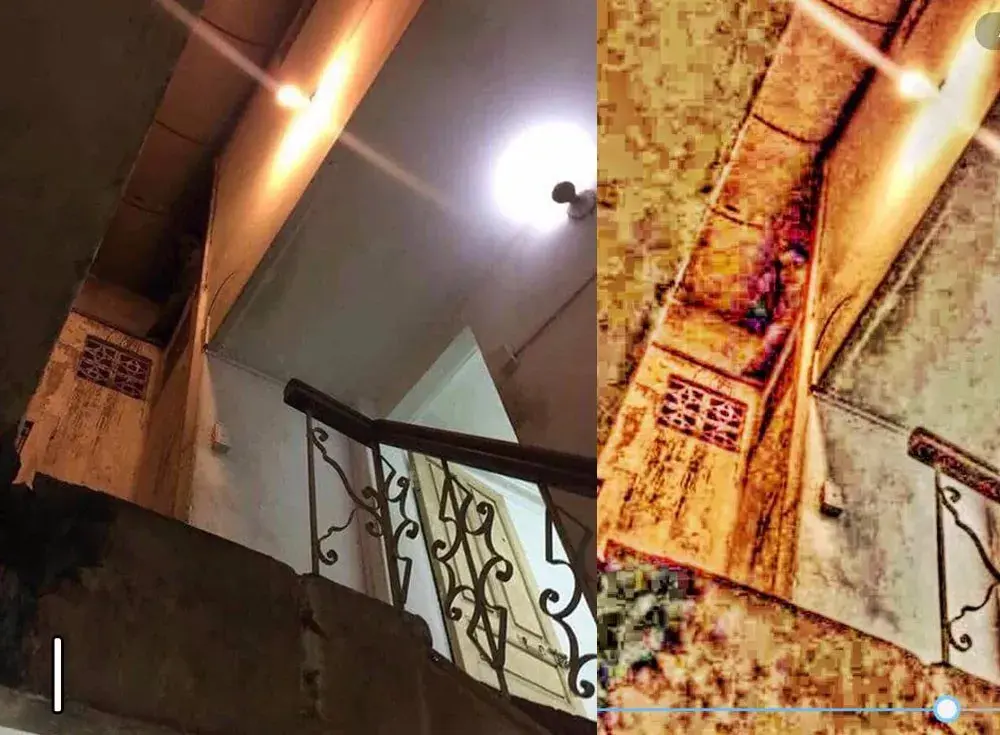 1.早前,泰国社交媒体上出现了一组宿舍闹鬼的可怕照片,从照片可见,这间灯光昏暗的宿舍顶楼那里,竟然有个长发女人从墙上的洞口探出头来。后来另有网友指出,自己曾住过那儿,怪事接二连三发生,原来旁边那间房曾有女子吊颈自尽。