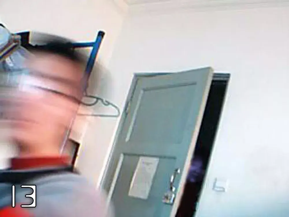 13.事主当晚正在宿舍玩摄像头,不知怎么就拍到了这张诡异的照片,门缝外正有个女的在窥视着他。