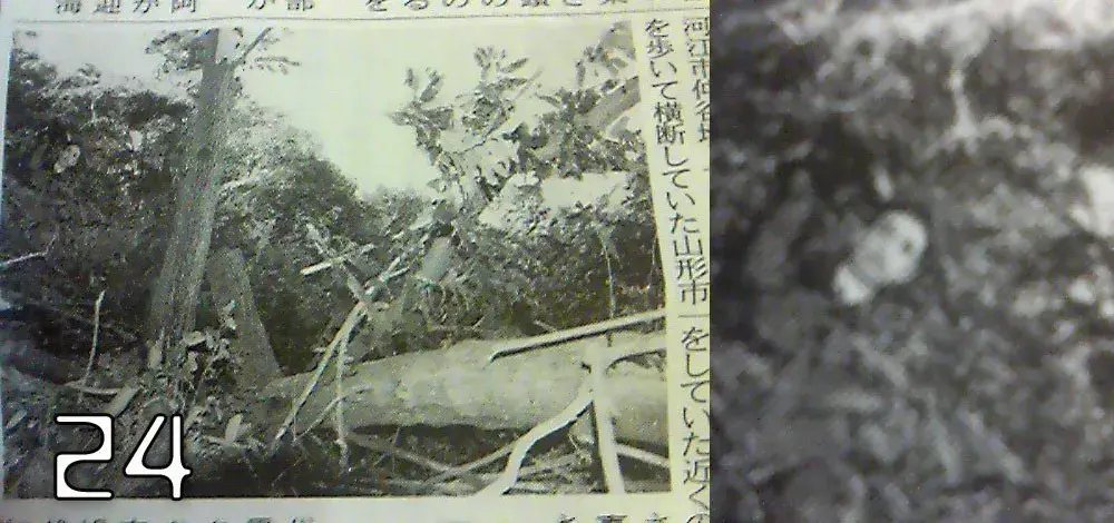 24.2010年10月18日,冲绳山形报刊登了一则关于工人被倒下的大树压死的报导,现场照片中只见有颗人头悬浮在空中。