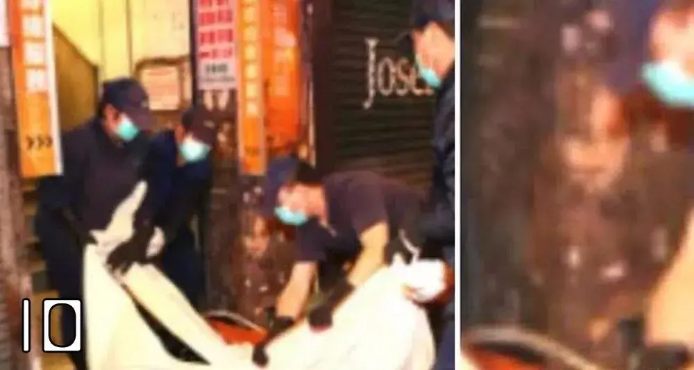 10.据说这张照片拍于香港,当时候一名男子被发现在一处没人居住的民宅中烧炭自杀,现场收尸时的照片疑似拍到了一个诡异的女子面庞