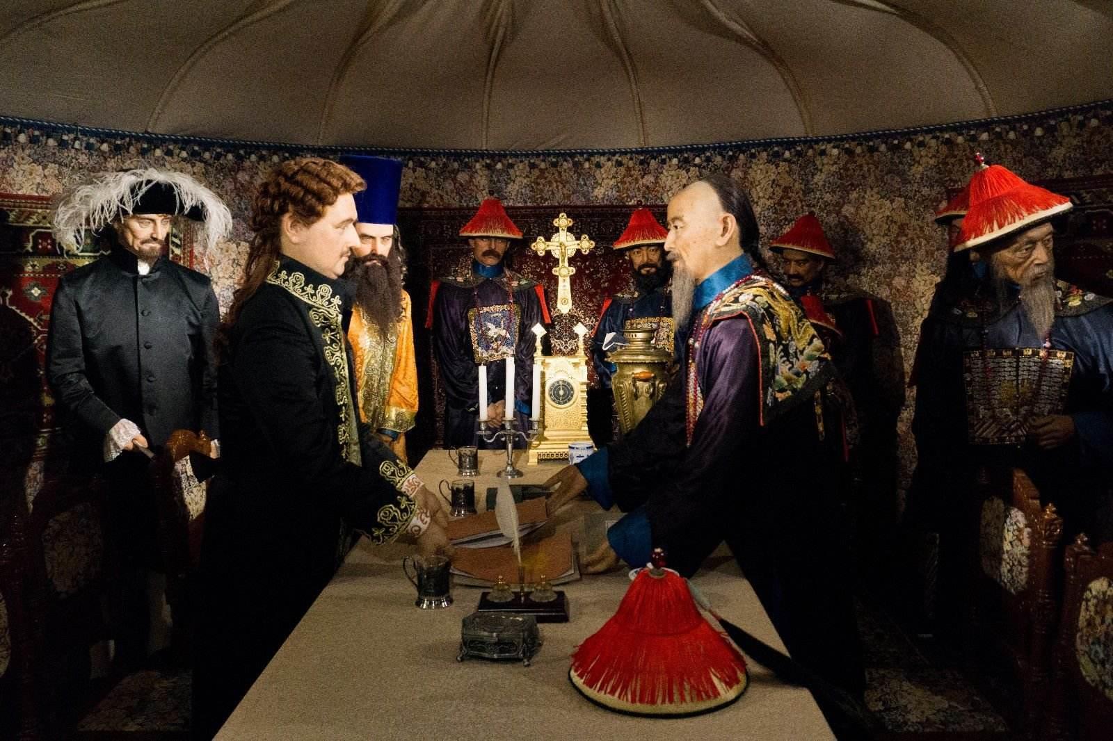 公元1755年乾隆皇帝趁准噶尔内乱之机出兵进占伊犁。两年后清军平定准噶尔残部阿睦尔撒纳的叛乱。至此漠西蒙古地区已全部被清王朝控制。1759年清军平定大小和卓之乱后将天山南北的整个新疆地区纳入到了版图。1689年9月7日签订的《尼布楚条约》划分了中俄两国东部边界——从法律上确立黑龙江和乌苏里江流域包括库页岛在内的广大地区属于中国领土。