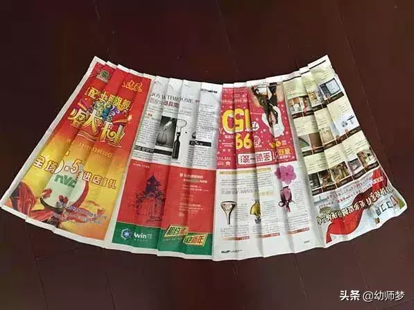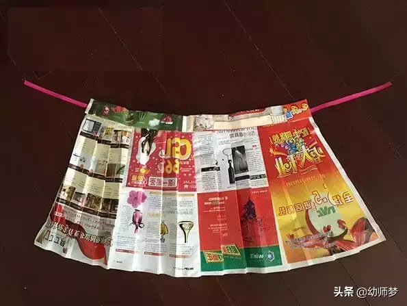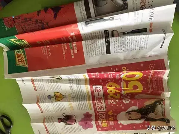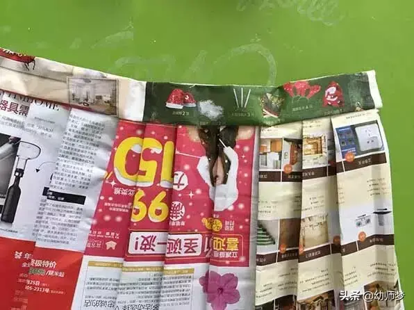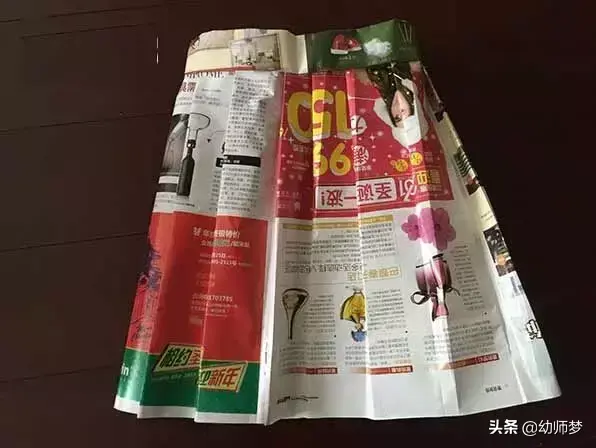 把报纸折起来,折的时候要斜着点折,才能折出收缩的腰部的效果。