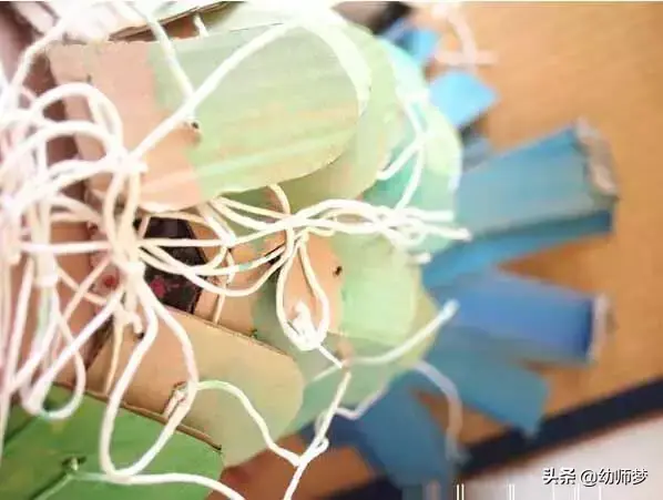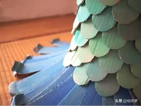 制作方法:鳞片用绳子一片一片穿起来,一层一层从下往上。鱼尾巴也同样的用绳子穿起来。