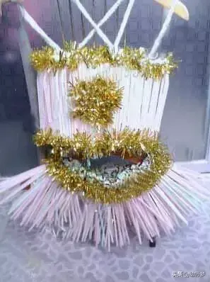 把吸管的一端用线串起来,再缝上花边和吊带绳就OK啦!