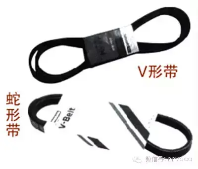 驱动空调压缩机的传动带有V形带和蛇形两种。
