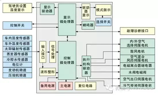 故障诊断存储:汽车空调系统发生故障,微电脑将故障部位用代码的形式存储起来。在需要修理时指示故障的部位。