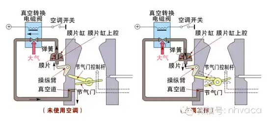 怠速自动调整装置:作用是当发动机怠速运转又需要制冷系统工作时,自动加大油门开度以增大发动机输出功率。