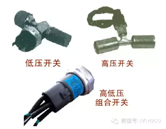 在空调制冷系统中一般都设有压力保护开关,有高压保护和低压保护两种。实现这种保护功能的元件是高压开关和低压开关或者高低压组合开关。