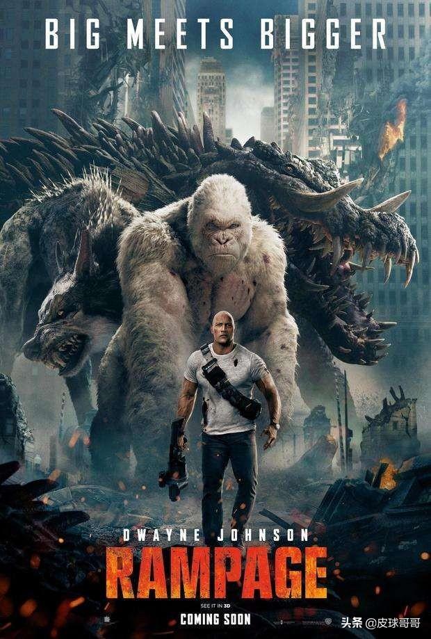 《狂暴巨兽》由新线电影公司出品,布拉德·佩顿执导,2018年3月14日在美国,中国内地已3D电影同步上映。影片讲述的是男主(道恩强森)是一名灵长动物学家并抚养了一只大猩猩,在大猩猩意外被外星辐射感染后体型变大,同时感染的还有一只超大的鳄鱼跟一只狼,他们肆意破坏城市建筑,人类的炮弹对于他们来说就好比饶痒痒,就这样便开始了一场人与巨型动物的斗争。