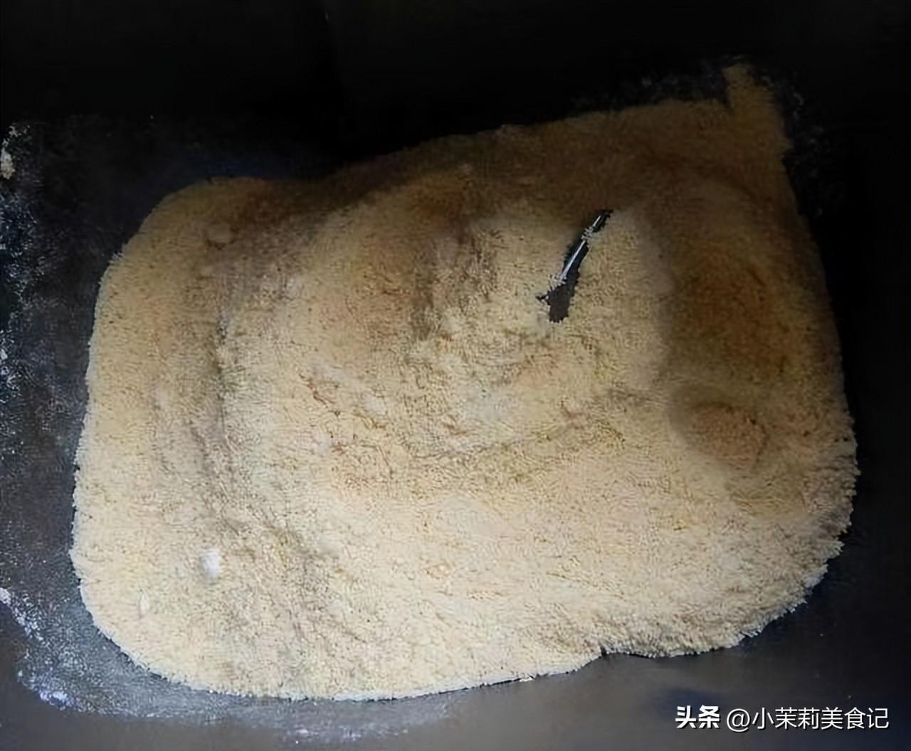 1、取100克左右的黄小米,清洗干净后,在料理机中反复搅打成细腻的粉末状。