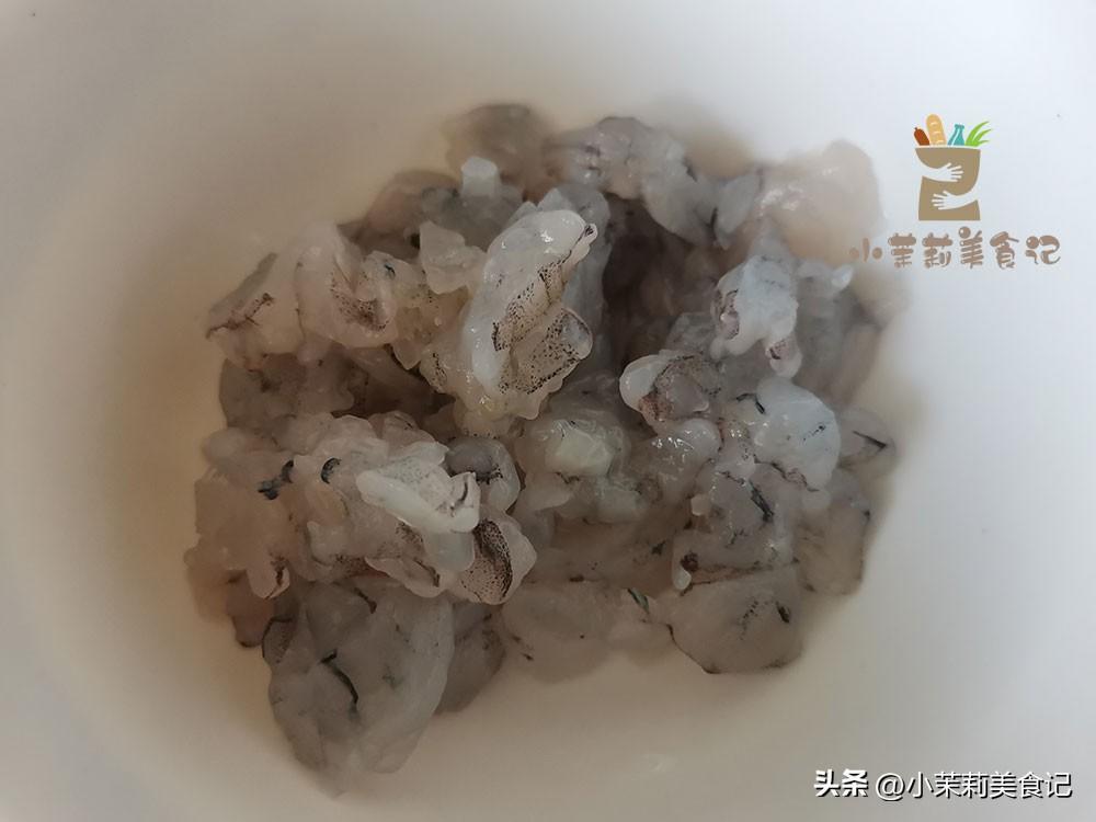 1、在调饺子馅的时候,我们可以放上一些虾仁,可以增加鲜美的味道,当然营养也更丰富。几个虾仁剥出来,处理干净,剁成小的颗粒状。