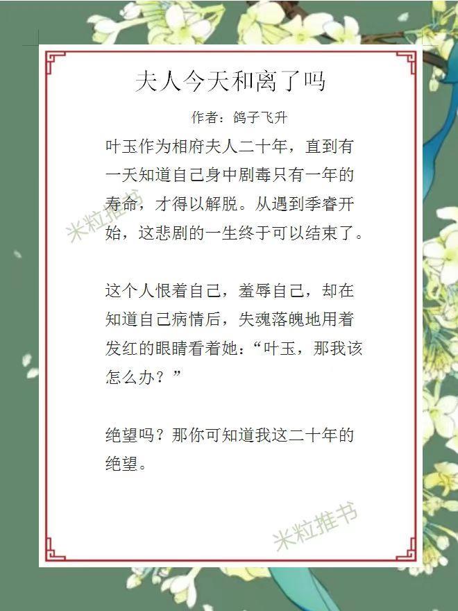 冷静女主vs偏执男主,男主因为女主父亲杀死自己初恋而恨上女主,成亲后女主在家里地位很低,男主一直给女主下毒,然后在知道女主中毒只有一年生命以后慌了神,才发觉自己一直爱着女主,番外男女主重生,男主想挽回,女主不回头,追妻火葬场,推荐!