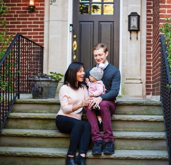 回归家庭的蒋维佳穿搭也是简约大气,一袭粉色上衣搭配紧身黑裤十分的低调,不施粉黛的容颜虽不像明星般的惊艳,但看着却很是舒服清秀,与帅气的老公在一块,更有种小女人的娇羞感,丝毫没有“叫板”特朗普的那种霸气。