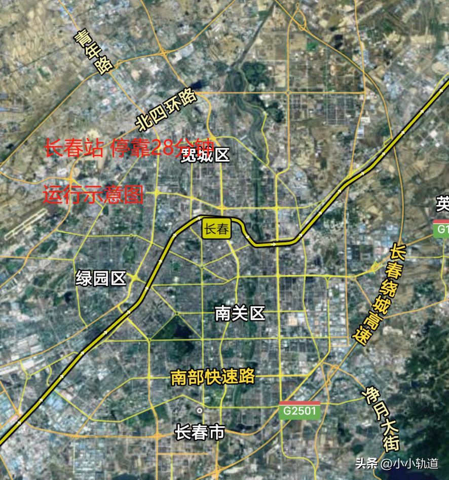 K1984次列车在徐州站停靠18分钟,德州站停靠21分钟,长春站停靠28分钟等,进行待避、加水等。