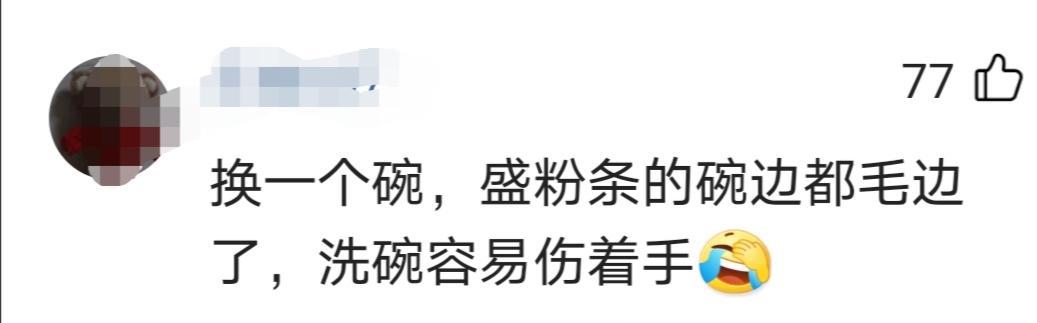 也有网友调侃说,盛粉条的碗边毛边了,换一个碗,不然容易伤到手