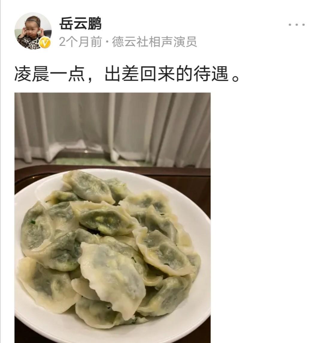 小岳岳晒的动态里美食占主流,其中饺子是当仁不让的主角儿,应该是得到了师父的真传“好吃不过饺子……”