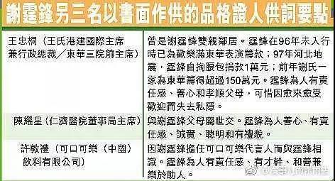 时隔二十天后,他在杨受成还有律师陪同下去当时同场的目击证人张柏芝家商讨,然后被香港廉政公署带走调查,当时杨受成等人还陪他一起去的廉政公署,逗留二小时后他们先行离开了。后来很多乱七八糟小道把时间线混为一谈,把另几个当场人也抹去不要。搞得跟谢霆锋被廉政公署抓奸一样。