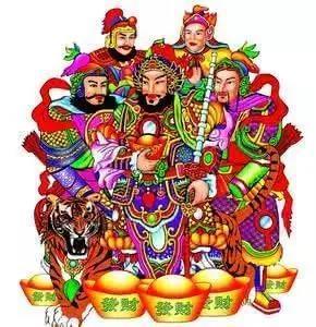 传说财神有五路神:户神、灶神、土神、门神、行神,谓之五路,指东西南北中,意思是出门有五路,都可以得到财富。