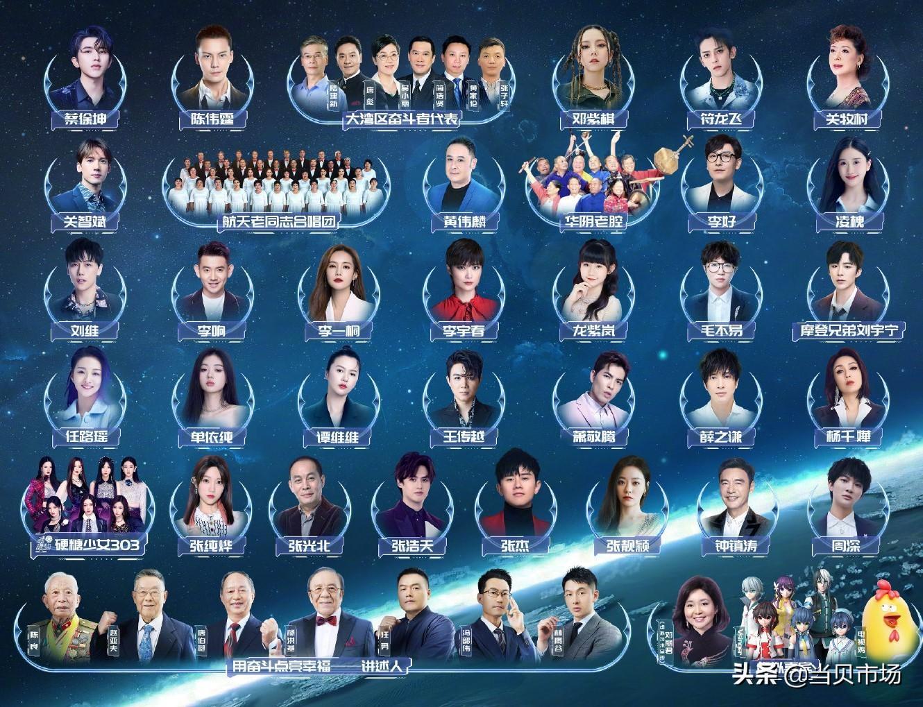 蔡徐坤、陈伟霆、陆建新、唐彪、吴小丽、简浩贤、黄家伦、张子轩、邓紫棋、符龙飞、关牧村、关智斌、航天老同志合唱团、黄伟麟、华阴老腔、凌槐、刘维、李一桐、李宇春、龙紫岚、毛不易、摩登兄弟刘宇宁、任路瑶、单依纯、谭维维、王传越、萧敬腾、薛之谦、杨千嬅、硬糖少女303、、张光北、张浩、张杰、张靓颖、钟镇涛、周深、陈良、赵亚夫、唐伯昶、杨洪基、汪勇、冯韶伟、林鹰谷、邓丽君(虚拟技术呈现)、Vsinger