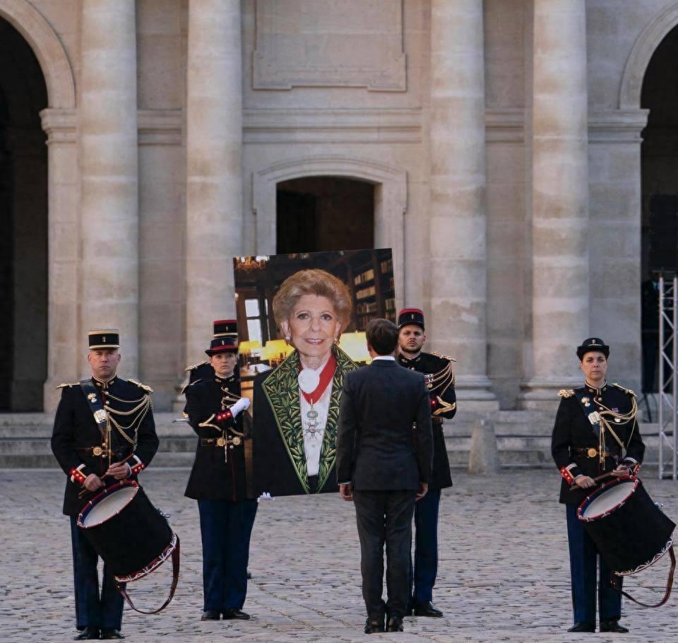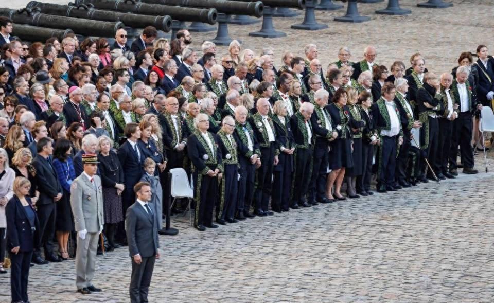 他向埃莱娜·卡雷·丹考斯女士致以最后的敬意,代表了国家和人民的情感。在国葬结束后,马克龙和新任院长阿敏·马卢夫握手,这也体现了法国政治和文化的联系。在这次国葬上,身为第一夫人的布里吉特·马克龙也出席了活动。她拥有一头蓬松金发,给人留下了深刻的印象。在入场时,她挽着丈夫的手臂走在亲属们的后方,展现出了作为第一夫人的威仪和风度。